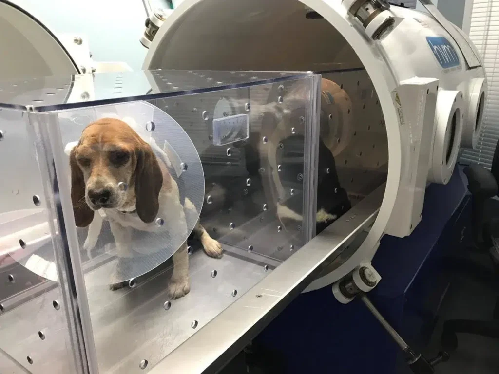 The UF Small Animal Hospital is one of the few veterinary hospitals in the country to offer HBOT. Although HBOT is used widely in human medicine, with many scientific publications reporting beneficial effects for humans and animals, availability of this treatment remains limited in veterinary patients.